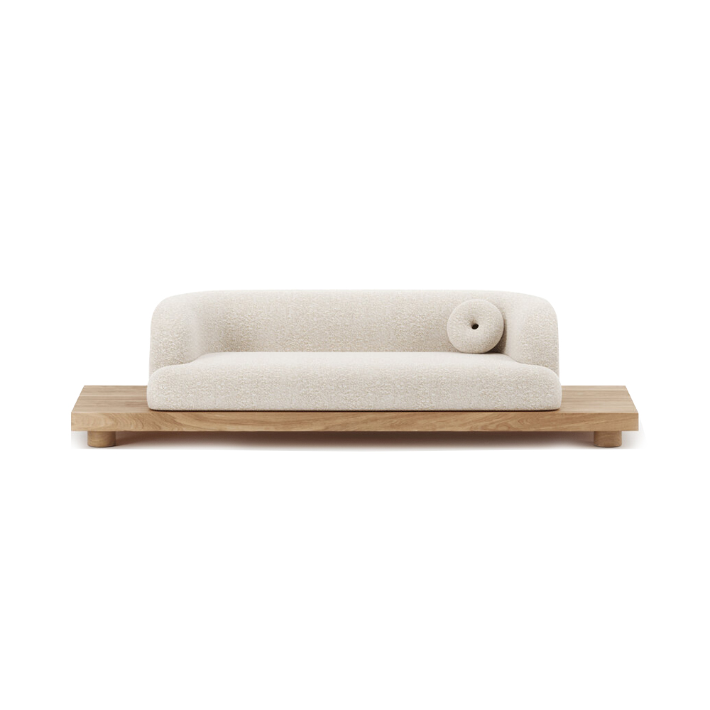 FINÍ is made with Elm wood and woolen fabrics. The light brown color has been meticulously chosen to give the product its comforting touch.